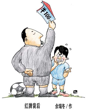 紅牌背后 2002年04月22日 09:54 ![]() 相關(guān)報道:體監(jiān)委確定近期工作重點 抓“黑哨”成為切入點 相關(guān)報道:體育總局有關(guān)人士:有足協(xié)官員涉嫌“黑哨” 相關(guān)報道:黑哨龔建平后悔不迭 “我錯過四次寬大機會” 相關(guān)報道:黑哨事件納入法律軌道 “中間人”孫培彥被抓 相關(guān)報道:收據(jù)復寫紙成證據(jù) 180萬元假球露出尾巴 相關(guān)報道:中國青年報:“3·15”也搞不定假球黑哨 相關(guān)報道:合肥晚報:3·15:假球不死的紀念 相關(guān)報道:告別假球陰霾 浙江綠城改踢“快樂足球” 相關(guān)報道:沒有證據(jù)傷及無辜? 閻世鐸駁假球案兩大質(zhì)疑 相關(guān)報道:回溯假球20年黑史 “假B事件”原來事出有源 相關(guān)報道:甲B:假球事件背景資料之相關(guān)比賽賽況回顧