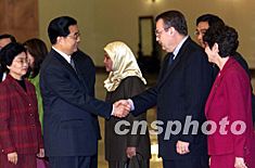 胡錦濤今啟程訪馬來(lái)西亞、新加坡和美國(guó)三國(guó)(圖) 2002年04月23日 14:02 ![]() 中國(guó)國(guó)家副主席胡錦濤二十三日離開(kāi)北京,前往馬來(lái)西亞、新加坡、美國(guó)訪問(wèn)。美國(guó)駐華使館公使銜參贊馬林等參加在北京人民大會(huì)堂舉行的送行儀式。中新社記者 毛建軍 攝