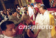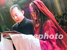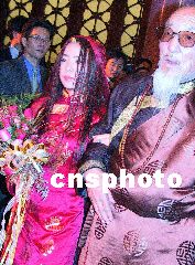 臺灣前政要陳履安長子與藏族姑娘在京喜結良緣 2002年04月28日 17:09 ![]() 圖為藏族姑娘在父親的帶領下步入結婚禮堂。王麗南 攝 ![]() 臺灣先生與西藏女認識兩月成婚。王麗南 攝 ![]() 參加陳宇廷和藏族姑娘央金拉姆的婚禮,爭相為新婚人送哈達。王麗南 攝 中新社北京四月二十八日電(記者耿軍)臺灣知名人士陳履安先生的長子陳宇廷與西藏女企業(yè)家、歌手央金拉姆喜結良緣。陳宇廷與央金拉姆的婚禮今天上午在北京飯店大宴會廳舉行。 婚禮主禮臺正后方懸掛著碩大的“解脫”二字,左右懸掛弘一大師的書法“不為自己求安樂,但愿眾生得離苦”。主禮臺上陳放有四只高大的經幢及唐卡,六位身披法衣的喇嘛分列兩側。 上午十一時,婚禮在法號聲中開始。大型投影屏幕上播放新人剪影短片,片中介紹了陳宇廷的爺爺陳誠、父親陳履安及央金拉姆一家。 當身著白色中式對襟衫的伴郎陪陳宇廷、身著藏裝的伴娘陪央金拉姆入席時,活佛帶領喇嘛唱頌吉祥祝福文。 這對新人依次獻上禮品,以報答父母、眾生、國家和三寶四重恩德,并跟隨活佛念“懺悔經”、“發(fā)愿文”。 這對新人在宣讀結婚誓約后,交換信物。陳宇廷贈予央金漢傳僧服和藏傳僧服,央金贈予陳宇廷金鋼鈴和金鋼杵。 陳履安先生代表家長向主持婚禮的活佛及來賓表示感謝。 擔任解脫服飾實業(yè)副董事長、化育文教基金會與陳誠文教基金會執(zhí)行長的陳宇廷,今年三十七歲,曾獲哈佛大學企業(yè)管理碩士學位。央金拉姆是藏族女企業(yè)家和歌手,她曾在北京中央民族大學藝術系和蘭州西北民族大學藝術系就讀,近年出任奇正藏藥集團營銷副總經理。這對新人于去年在廣東中山相識。 各界人士近千人出席了今天的婚禮。 相關報道:臺灣前“監(jiān)察院長”陳履安抵京參加兒子婚禮