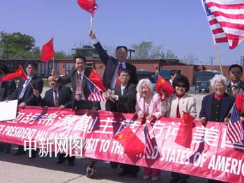 組圖:胡錦濤飛抵華盛頓繼續(xù)對美正式訪問 2002年05月01日 10:39 ![]() 美國當?shù)貢r間四月三十日上午十一時許,胡錦濤副主席乘專機從紐約飛抵華盛頓。圖為胡錦濤副主席和夫人劉永清從中國國際航空公司的飛機上步下舷梯。中新社 徐德金/攝 ![]() 在安德魯空軍機場,胡副主席向歡迎人群揮手致意。中新社 徐德金/攝 ![]() 在機場,胡副主席向華人華僑、留學生代表揮手致意。中新社 徐德金/攝 ![]() 華盛頓地區(qū)華人華僑、留學生代表在安德魯空軍機場歡迎胡錦濤副主席,他們高舉“歡迎胡副主席”、“祝胡副主席訪美成功”、“促進中美友誼”等標語牌,表達心聲。中新社 徐德金/攝 ![]() 華盛頓地區(qū)華人華僑、留學生代表和中國駐美使館工作人員,在安德魯空軍基地熱烈歡迎中國國家副主席胡錦濤訪問美國。中新社 徐德金/攝