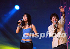 央視《同一首歌》——“今宵歡樂”走進深圳 2002年05月01日 21:21 ![]() 四月三十日晚,中央電視臺《同一首歌》——“今宵歡樂”大型演唱會在深圳歡樂谷水上夢幻舞臺舉行,來自兩岸三地的明星聯(lián)袂演出。圖為臺灣歌星邰正宵與大陸歌星孫悅一起演唱《好人好夢》。作者: 陳文