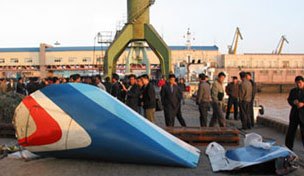 圖文:失事飛機尾部打撈上岸 尚未發(fā)現幸存者 2002年05月08日 10:20 ![]() 失事飛機尾部 新華網/圖 中新網北京5月8日消息:5月7日21時許,中國民航北方航空公司的一架麥道82飛機在大連海域失事。目前失事飛機尾部已經打撈上岸,搜救船只一直在大連海域搜尋,但尚未發(fā)現幸存者。 空難事故引起了中央領導的高度關注,江澤民、朱镕基、胡錦濤、李嵐清等中央領導同志立即指示國家經貿委、交通部、民航總局全力組織搶救,并指示軍隊支持救援工作。 該飛機共有112人,其中103名為乘客,另有9名機組人員。經過查證,有8名外籍乘客,其他均為中國人。事故現場已打撈上60多具遇難者尸體。許多尸體表面呈黑色,且衣服已脫落。估計是飛機艙內起火導致身上的衣服被燒焦,落入海中后又被海水沖走所致。 據有關人士分析,飛機原因不明的失事和惡劣的海上環(huán)境,使得乘客生存的機會非常渺茫。