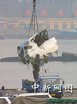 圖:“五·七”空難失事飛機(jī)機(jī)頭打撈出水 2002年05月10日 18:43 ![]() “五·七”空難失事飛機(jī)機(jī)頭及部分機(jī)體今日打撈出水,由于飛機(jī)殘?bào)w散落范圍較廣,目前各項(xiàng)掃海打撈工作仍在進(jìn)行中。中新社記者 王麗南 攝