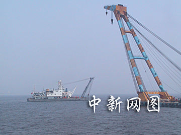 ![]() 有關(guān)部門(mén)出動(dòng)巨型起吊設(shè)備打撈五七空難失事客機(jī)機(jī)頭。中新社記者 王麗南 攝