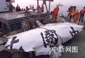 圖:又打撈起較大殘骸 “中國北”字樣清晰可見 2002年05月11日 21:54 ![]() “五-七”空難現(xiàn)場打撈部門今天又打撈出一塊較大的失事飛機殘骸,殘骸上“中國北”三個字清晰可見。(中新社記者王麗南攝)