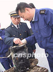 圖:救撈人員辨認(rèn)飛機(jī)殘骸上的電子感應(yīng)設(shè)備 2002年05月13日 13:56 ![]() 十二日中午,北海艦隊(duì)派出的救撈船又打撈出一塊較大飛機(jī)殘骸,殘骸中有一些關(guān)鍵設(shè)備。圖為北海艦隊(duì)副司令員張巖和海軍救撈船官兵正在辨認(rèn)布滿電子元件的電子感應(yīng)設(shè)備。中新社記者 王麗南 攝
