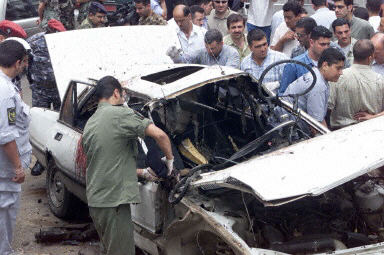 圖:黎巴嫩汽車炸彈爆炸 人陣書記之子被炸死 2002年05月21日 09:06 黎巴嫩首都貝魯特市中心今日中午發(fā)生一起汽車炸彈爆炸事件,解放巴勒斯坦人民陣線(總指揮部)書記艾哈邁德·賈布里勒的兒子被當(dāng)場(chǎng)炸死。圖為工作人員清理現(xiàn)場(chǎng)。中新網(wǎng)圖