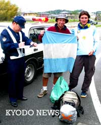 阿根廷兩熱心球迷在日本被當成足球流氓圍捕 2002年05月22日 08:43 ![]() 在阿根廷國家隊進行集訓的福島縣J-VILLAGE附近,被當成“可疑人士”接受盤問的阿根廷球迷(共同社)