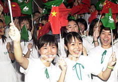 圖:澳門學(xué)生歡迎中國(guó)國(guó)家足球隊(duì) 2002年05月24日 19:12 ![]() 澳門教業(yè)高二的一百名學(xué)生23日晚高舉中國(guó)國(guó)旗和澳門特區(qū)區(qū)旗,歡迎中國(guó)國(guó)家足球隊(duì)的到來(lái)。中新社記者 李剛 攝