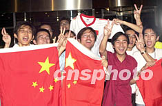 ![]() 澳門科大學(xué)生23日晚守候在中國(guó)國(guó)家足球隊(duì)下榻的東方文華酒店,高舉中國(guó)國(guó)旗歡迎中國(guó)國(guó)腳的到來(lái)。中新社記者 李剛 攝