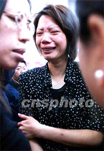 圖:臺(tái)灣華航空難者家屬悲痛不已 2002年05月25日 23:19 ![]() 臺(tái)灣華航空難者家屬在松山機(jī)場(chǎng)等待飛往澎湖的班機(jī)。中央社攝/中新社