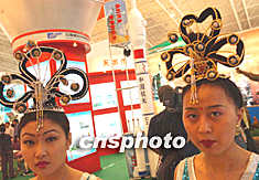 圖:飛天公關(guān)小姐推介"神舟"宇航飛船 2002年05月26日 11:08 ![]() 兩名扮作古代飛天仙女的甘肅公關(guān)小姐,在五月北京國際科技產(chǎn)業(yè)博覽會(huì)上,推介身后的中國“神舟”宇航飛船。賈國榮 攝
