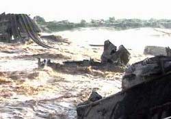 圖文:因洪水而中斷的隴海鐵路今晨恢復(fù)通車 2002年06月10日 14:06 ![]() 因洪水中斷的西安市隴海鐵路灞河大橋恢復(fù)通車 中新社西安六月十日電(張珂冽瑋)因山洪暴發(fā)而被沖垮的陜西省西安市隴海鐵路灞河大橋,已于今日凌晨零點(diǎn)五十五分恢復(fù)通車。有關(guān)人士稱,昨日滯留西安的近萬名旅客現(xiàn)已基本疏散。截至今天中午,已通過的雙向?qū)﹂_客車達(dá)到十五列。 據(jù)了解,灞河大橋位于隴海鐵路西安站以東,始建于一九三四年,因橋齡較長(zhǎng),橋基飽經(jīng)風(fēng)蝕雨刷。九日凌晨至下午的一場(chǎng)大暴雨之后,灞河洪水流量達(dá)到每秒六百立方米。四個(gè)橋墩被沖掉,五孔橋被沖垮,造成一百零五米長(zhǎng)的一段鐵路橋完全垮塌斷裂,繁忙的隴海鐵路上下行一度中斷達(dá)八個(gè)多小時(shí),幸無人員傷亡。 記者今天在現(xiàn)場(chǎng)采訪時(shí)看到,昔日干涸的灞河洶涌澎湃,渾黃的激流拍打著河岸,在河床上形成了落差不等的瀑布,氣勢(shì)壯觀。河岸上站滿了搶險(xiǎn)人員,大型挖掘機(jī)、推土機(jī)等搶險(xiǎn)設(shè)備源源不斷地開赴現(xiàn)場(chǎng)。大批警察疏導(dǎo)交通,維持秩序,協(xié)助搶險(xiǎn)。 一位老大爺心有余悸地告訴記者,昨天下午三點(diǎn)半,一列開往安康的火車剛剛從距隴海線灞橋鐵路橋東側(cè)的西康鐵路橋開過,一聲巨響,灞橋鐵路橋第四號(hào)橋墩轟然倒塌了。 據(jù)西鐵分局副局長(zhǎng)杜振才介紹,為了盡快恢復(fù)隴海線的通車,當(dāng)?shù)罔F路部門臨時(shí)修建一條便線與隴海線毗鄰的西康鐵路新橋相連。今日零點(diǎn)五十五分,第一列旅客列車K一七三(青島至蘭州)順利通過灞河大橋。 杜振才副局長(zhǎng)表示,目前仍在繼續(xù)加固西康線新橋,每小時(shí)通過火車數(shù)為三列,有部分列車臨時(shí)改行其它線路,昨晚繞行列車數(shù)為十一列。 據(jù)透露,中國鐵道部對(duì)此十分重視,一再敦促盡快落實(shí)灞河大橋修復(fù)方案,F(xiàn)投入的搶險(xiǎn)人力達(dá)一千五百人左右,估計(jì)修復(fù)工作需耗時(shí)兩至三個(gè)月左右。(完) 中新網(wǎng)北京6月10日消息:6月9日下午,流經(jīng)西安市東郊的灞河水流猛漲,將隴海線西安灞橋段鐵路大橋沖垮,致使交通大動(dòng)脈隴海鐵路線中斷。據(jù)中央電視臺(tái)報(bào)道,今天早上6時(shí)20分開始,隴海線受阻列車從坍塌鐵路大橋旁的西康鐵路橋通過,隴海鐵路已經(jīng)臨時(shí)恢復(fù)通車。 據(jù)報(bào)道,工程部門計(jì)劃近期在坍塌鐵路橋處搭一座軍便橋,并計(jì)劃重新設(shè)計(jì)修建坍塌的鐵路橋。 6月9日下午,灞河水波濤洶涌,出現(xiàn)近20年來最大洪水。15時(shí)30分左右,隴海線西安至臨潼間的368米長(zhǎng)的灞橋鐵路橋第4號(hào)橋墩轟然倒塌,鐵路線攔腰垮塌陷入激流。至17時(shí),隴海鐵路橋第5號(hào)、2號(hào)和1號(hào)橋墩相繼發(fā)生塌陷,造成約150米鐵路橋完全垮塌斷裂。 灞橋鐵路大橋被沖斷后,致使300多次列車滯留,隴海鐵路陷入癱瘓,滯留西安的旅客接近1萬人。 相關(guān)報(bào)道:隴海鐵路灞河大橋因洪水而中斷 客貨運(yùn)輸受阻