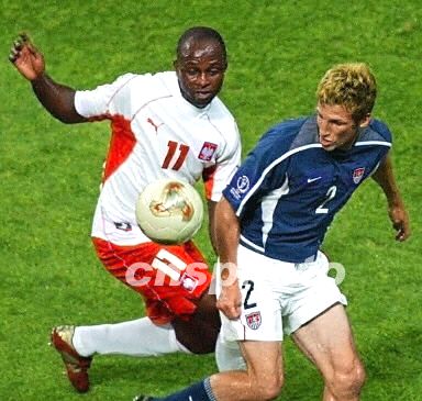 圖:波蘭3:1美國 奧利薩德貝與哈久克爭搶 2002年06月14日 21:44 ![]() 韓日世界杯D組波蘭隊與美國隊的比賽結束,比分為波蘭隊3-1戰(zhàn)勝美國,11號奧利薩德貝為波蘭隊先入一球,9號克里扎洛維茨攻入第二球,14號澤瓦拉科夫攻入第三球。美國隊21號多諾萬攻入一球。圖為波蘭隊奧利薩德貝與美國哈久克爭搶。