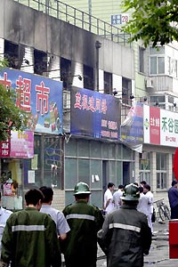 北京一網(wǎng)吧今晨發(fā)生火災(zāi)造成24死13人受傷(圖) 2002年06月16日 09:10 ![]() 目前起火原因正在調(diào)查之中。新華社記者 唐召明攝 中新網(wǎng)北京6月16日消息:據(jù)新華網(wǎng)報(bào)道,今天凌晨2時(shí)40分左右,北京海淀區(qū)學(xué)院路20號(hào)院內(nèi)的一家藍(lán)極速網(wǎng)吧發(fā)生火災(zāi)。經(jīng)公安消防部門(mén)現(xiàn)場(chǎng)勘察,火災(zāi)造成24人死亡,13人受傷。 接報(bào)后,北京公安消防部門(mén)迅速趕到現(xiàn)場(chǎng)。3時(shí)30分,火被撲滅。記者在現(xiàn)場(chǎng)了解到,公安部、北京市領(lǐng)導(dǎo)在現(xiàn)場(chǎng)組織搶救;馂(zāi)原因正在調(diào)查中。(牛愛(ài)民、李煦)