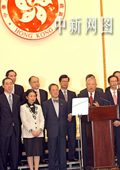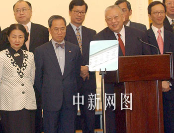 組圖:香港特首董建華與“新內(nèi)閣”拍攝全家福 2002年06月24日 12:36 ![]() 董建華與“新內(nèi)閣”拍攝全家福。香港特首董建華6月24日在香港禮賓府宣布二十一名“新內(nèi)閣”成員名單后,與將肩負(fù)重任的高官拍攝全家福。中新社傳真任晨鳴攝 ![]() 董建華宣布“新內(nèi)閣”名單。香港特首董建華6月24日在香港禮賓府宣布二十一名“新內(nèi)閣”成員名單。中新社傳真洪少葵攝 ![]() 曾蔭權(quán)梁錦松梁愛詩繼續(xù)輔佐董建華。香港特首董建華6月24日在香港禮賓府宣布二十一名“新內(nèi)閣”成員名單,原來的三位司長(zhǎng):政務(wù)司司長(zhǎng)曾蔭權(quán)、財(cái)政司司長(zhǎng)梁錦松、律政司司長(zhǎng)梁愛詩留任。中新社傳真洪少葵攝