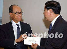 李嘉誠贊香港特區(qū)“問責(zé)制”新班子非常好(圖) 2002年06月26日 08:50 ![]() 香港首富、長江實業(yè)集團主席李嘉誠,6月25日在香港將一千萬港元支票交與中聯(lián)辦主任姜恩柱,以救濟今夏中國大陸遭受嚴(yán)重水災(zāi)的地區(qū)民眾。中新社記者 任晨鳴 攝