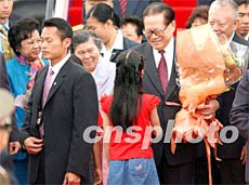 ![]() 中國(guó)國(guó)家主席江澤民和夫人王冶坪,6月30日下午乘專機(jī)抵達(dá)香港,出席香港回歸祖國(guó)五周年大會(huì)暨香港特區(qū)第二屆政府就職典禮活動(dòng),香港兒童向江主席獻(xiàn)花。任晨鳴 攝