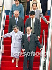 ![]() 中國(guó)國(guó)家主席江澤民6月30日下午乘專機(jī)抵達(dá)香港,出席香港回歸祖國(guó)五周年大會(huì)暨香港特區(qū)第二屆政府就職典禮活動(dòng),江主席高興地向歡迎人群揮手致意。任晨鳴 攝