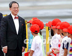 圖:政務(wù)司長曾蔭權(quán)與前來歡送的小朋友寒暄 2002年07月01日 18:15 ![]() 香港政務(wù)司司長曾蔭權(quán),7月1日在香港國際機場為國家主席江澤民送行前,與前來歡送的小朋友寒暄。中新社圖 洪少葵 攝