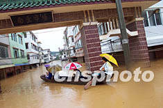 圖:廣東封開(kāi)縣洪水受災(zāi)人數(shù)達(dá)六萬(wàn) 2002年07月03日 19:44 ![]() 受上游廣西合面獅水庫(kù)泄洪的影響,廣東封開(kāi)縣賀江水位急劇上漲,賀江沿線八個(gè)鄉(xiāng)鎮(zhèn)受災(zāi)人數(shù)達(dá)六萬(wàn)三千多,直接經(jīng)濟(jì)損失在一億元人民幣以上。該縣南豐鎮(zhèn)洪水超警戒水位四米,最深水位超過(guò)六米,二樓以下的房屋被淹,街上到處可見(jiàn)汽車(chē)被淹在水中,大街小巷汪洋一片。作者:黃耀輝