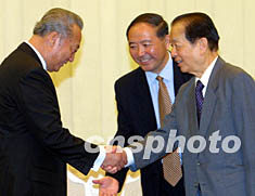 圖:錢其琛會見臺灣知名企業(yè)家大陸考察團 2002年07月05日 20:15 ![]() 中國國務院副總理錢其琛五日在北京會見由辜濂松(左一)等組成的“臺灣知名企業(yè)家大陸考察團”一行。作者:鄭萍萍