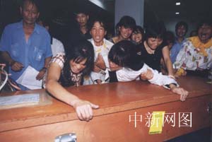 圖文:在以色列遇難的兩名福建勞工遺體運(yùn)抵福州 2002年08月07日 22:43 ![]() 圖為福建中福公司副總經(jīng)理林炎,向死難者許恒勇、李斌的家屬發(fā)送慰問金。中新社記者 劉可耕 攝 ![]() 圖為許恒勇的親屬哭倒在他的棺木上。中新社記者 劉可耕 攝 ![]() 圖為李斌的一雙兒女披麻戴孝迎接父親棺木。中新社記者 劉可耕 攝 中新社福州八月七日電 (記者 陳悅)今晚七時(shí)許,從香港起飛的MU五七八航班運(yùn)載著在上月以色列特拉維夫爆炸案中遇難的福建勞工許恒勇和李斌的遺體在福州長(zhǎng)樂機(jī)場(chǎng)降落。七時(shí)半,等候多時(shí)的親屬們迎來了遺體,隨即護(hù)送靈柩返回福州平潭故鄉(xiāng)。 等候遺體時(shí),兩人的親屬都沉浸在巨大的悲痛中。李斌和許恒勇的妻子自出發(fā)起就痛哭不絕,此時(shí)已聲音嘶;許恒勇的妹妹則突然昏厥過去,良久才蘇醒。許恒勇的叔叔介紹,兩人的親屬是今日早些時(shí)候冒著暴雨從平潭啟程的,許家家境不好,許恒勇是家中的頂梁柱,他的去世給家人帶來巨大打擊,他十三歲的大兒子受刺激精神恍惚,一度住院。李斌的親屬亦介紹,李斌的岳父聽到噩耗后不久就去世了。 七時(shí)半許,靈柩被運(yùn)出機(jī)場(chǎng)貨運(yùn)出口,家屬們護(hù)送棺木運(yùn)上車。據(jù)稱,兩人原所屬的福建中福公司亦來機(jī)場(chǎng)接靈柩并為兩人辦理相關(guān)手續(xù)。該公司副總經(jīng)理林炎向兩人送上該公司職員募集的捐款。林炎介紹,以色列還將派官員及保險(xiǎn)公司職員來北京商討賠償事宜。據(jù)悉,二人雖均屬合法入境,但許恒勇已“跳槽”離開原打工單位,而李斌屬超期非法滯留,故二人獲得的賠償標(biāo)準(zhǔn)將無法完全比照在“四·一二”耶路撒冷爆炸案中遇難的福建勞工獲得的以方賠償。(完)