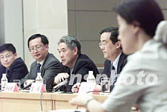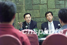 ![]() 大陸臺(tái)灣問題專家辛旗(左)、李義虎等九日在北京就陳水扁“8.3”“臺(tái)獨(dú)”言論接受媒體聯(lián)合采訪。