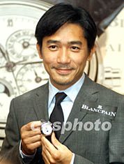 圖:香港影帝梁朝偉試戴六百萬港元瑞士名表 2002年08月09日 21:18 ![]() 全世界制作工藝最復雜的機械手表──瑞士名表Blancpain 1735,8月9日在香港面市,香港影帝梁朝偉乘坐名貴房車到港島最豪華的文華東方酒店試戴該款價值六百萬港元的名表。作者: 任晨鳴