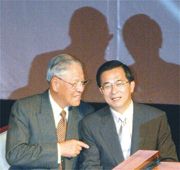 陳水扁與李登輝同臺(tái)現(xiàn)身 一唱一和鼓吹“臺(tái)獨(dú)” 2002年08月12日 09:49 ![]() 李登輝(左)與陳水扁交頭接耳(臺(tái)灣聯(lián)合報(bào)圖) 中新網(wǎng)香港8月12日消息:臺(tái)北訊,陳水扁與李登輝昨天先后在“臺(tái)獨(dú)”黨派“臺(tái)灣團(tuán)結(jié)聯(lián)盟”一周年“黨慶”活動(dòng)中放話(huà),再放“臺(tái)獨(dú)”厥詞,而且兩人致詞內(nèi)容明顯相互呼應(yīng)。 在“臺(tái)聯(lián)黨”的“特別安排”下,陳水扁與李登輝兩人繼陳氏拋出“一邊一國(guó)論”之后,首度公開(kāi)同臺(tái)亮相。 陳水扁在發(fā)言時(shí)未提所謂“一邊一國(guó)”論,但又抹黑中國(guó)大陸對(duì)臺(tái)灣“武力威脅”和“國(guó)際打壓”,并鼓動(dòng)說(shuō):“對(duì)的信念絕不放棄,對(duì)的路要繼續(xù)走。” 陳水扁還用閩南語(yǔ)說(shuō),“不能被人唬得驚驚到”,要“歡喜看未來(lái)”。 李登輝隨后發(fā)言公開(kāi)支持陳水扁,聲稱(chēng)“百分之百”支持所謂“一邊一國(guó)”論,并指此論為“事實(shí)的表述”。這名“臺(tái)聯(lián)黨”的“精神導(dǎo)師”更鼓吹堅(jiān)持臺(tái)灣“主權(quán)獨(dú)立”,并指兩岸是“國(guó)與國(guó)的關(guān)系”。 李登輝呼應(yīng)陳水扁“不要被嚇倒”的說(shuō)法,對(duì)“臺(tái)獨(dú)”份子放話(huà)說(shuō)“免驚啦”,而且“不要被臺(tái)北‘外來(lái)政權(quán)’的大本營(yíng)與統(tǒng)派媒體嚇倒”。 島內(nèi)媒體報(bào)道指出,陳水扁與李登輝先后發(fā)言的內(nèi)容明顯相互呼應(yīng),陳水扁要“臺(tái)聯(lián)黨”在當(dāng)局“立法院”中力拼李登輝定的“指標(biāo)”說(shuō)35席,李登輝則說(shuō)“很不好意思,還差20多席”;陳水扁要大家不要被中國(guó)大陸“嚇倒”,李登輝則要大家“安心”。兩人不僅相偕進(jìn)場(chǎng),而且陳水扁在臺(tái)上講話(huà)時(shí),臺(tái)下的李登輝頻頻拍手。