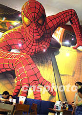 圖:美國大片《蜘蛛俠》風(fēng)靡上海灘 2002年08月15日 19:58 ![]() 正在上海上映的美國大片《蜘蛛俠》在當(dāng)?shù)匾l(fā)一股“蜘蛛俠”熱,不少商店、餐館紛紛借此形象為自己宣傳造勢。圖為申城一餐館的巨型“蜘蛛俠”。湯彥俊 攝