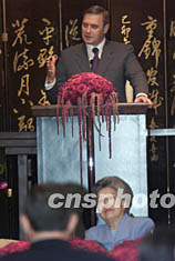 今天抵達上海的卡西亞諾夫中午出席了中方經(jīng)濟界人士舉行的午餐會,并發(fā)表講話。中國國務(wù)委員吳儀、俄羅斯聯(lián)邦政府副總理赫里斯堅科陪同出席午餐會。
