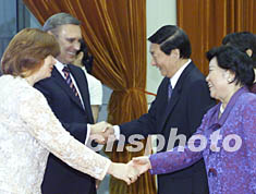 朱镕基夫人勞安、國家計委主任曾培炎等參加了今天的歡迎儀式。