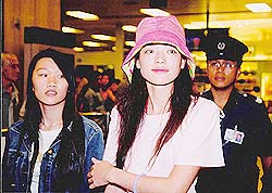反之,頭戴粉紅帽,身穿粉紅T恤,襯于一條藍(lán)色牛仔褲的舒淇,神清氣爽地乘搭CX735抵新時(shí),或許因未有影迷會(huì)造勢(shì),影迷零零星星,未見(jiàn)熱鬧,有三兩影迷見(jiàn)舒大美女,喜悅地呼喚伊人的芳名,舒淇應(yīng)聲望去,只是含蓄地笑笑。