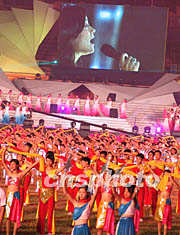 中國焦作第二屆太極拳年會二十八日晚開幕,毛阿敏等多名大牌歌手登臺獻歌。作者:王麗南