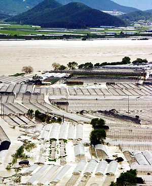 中新網(wǎng)北京9月2日消息:韓國(guó)遭受四十年來(lái)最強(qiáng)烈的臺(tái)風(fēng)吹襲,至少造成一百一十二人死亡或失蹤,初步估計(jì)損失達(dá)二十五億美元,九月底在釜山舉行亞運(yùn)會(huì)的部分設(shè)施也受到損毀,總統(tǒng)金大中召開(kāi)緊急內(nèi)閣會(huì)議,宣布各政府部門(mén)處于災(zāi)難戒備狀態(tài),并動(dòng)員軍隊(duì)參與救災(zāi)工作。