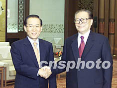 中新社北京九月三日電 (記者 朱大強(qiáng))中共中央總書記、國家主席江澤民今天在人民大會堂會見了來訪的韓國大國家黨名譽(yù)總裁李會昌一行。