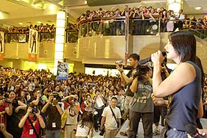 仔仔周渝民2月底來新,在本地新達(dá)城展開6000歌迷馬拉松簽名時,當(dāng)時萬人包圍仔仔,出動50名保安護駕,而仔仔所收到的禮物多達(dá)40幾袋,場面非常轟動!