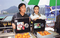 昨日英皇高層吳雨及鄭堯檉帶了兩箱柑前往探班﹐祝賀Joey及Eason的新碟同時(shí)奪得白金唱片佳績。而Eason更捧著早前在新加坡金曲獎(jiǎng)中奪得的最受歡迎男歌手獎(jiǎng)座照相。Eason是繼劉德華﹑張學(xué)友及張信哲后另一位得該獎(jiǎng)的歌手。談到當(dāng)晚他剛巧去了洗手間而錯(cuò)過親自上臺(tái)領(lǐng)獎(jiǎng)的機(jī)會(huì)﹐Eason表示﹐真的不知自己會(huì)得獎(jiǎng)﹐也從來不喜歡預(yù)知得獎(jiǎng)名單﹐所以當(dāng)?shù)孟か@獎(jiǎng)一刻感到愕然。