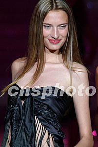 2002世界精英模特大賽總決賽七日晚在北非突尼斯舉行,來自世界各國的模特選手,在突尼斯古老的角斗場進(jìn)行角逐。圖為模特身穿晚裝展示。