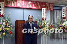 中國駐日使館新聞參贊黃星原代表武大偉大使和使館對中國新聞社成立五十周年表示祝賀。他說,中新社是中國兩大通訊社之一,成立五十年來,面向世界,開拓進取,在激烈的國際競爭中找到自己的位置,在國際上發(fā)揮了越來越重要的特殊作用。中新社長期以來為傳遞中國的信息,反映海外華僑華人的聲音,架起了中國與世界溝通的橋梁,特別是為加深中國和日本兩國人民的相互了解,為增進兩國人民的友誼,為促進兩國友好關(guān)系的發(fā)展做出了很大的貢獻。對此,謹代表中國駐日使館表示衷心的感謝。五十周年是中國新聞社既往開來、風華正茂的時期,祝愿中國新聞社在今后激烈的國際競爭中年年發(fā)展,歲歲繁榮。