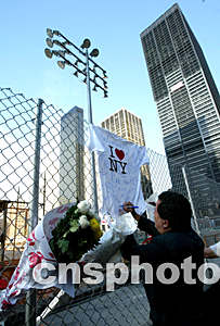 9月10日(美國紐約時間),在紐約世貿中心遺址前,紐約市民及各國游客簽名紀念“9.11”事件一周年。作者:王瑤