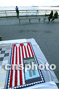 9月10日(美國紐約時間),在紐約炮臺公園,美國藝術家展示紀念“9.11”事件的藝術品。作者:王瑤