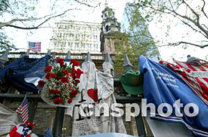 9月10日(美國紐約時間),在紐約曼哈頓街頭,人們用各種紀念品追悼”9.11“事件遇難者。作者:王瑤