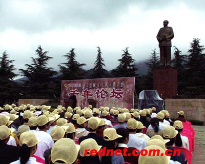 開(kāi)幕式后,在毛澤東銅像廣場(chǎng),來(lái)自中央文獻(xiàn)研究室的研究員、著名“毛學(xué)”專家、大型電影《開(kāi)國(guó)領(lǐng)袖毛澤東》總撰稿人陳晉走上千年論壇,圍繞“毛澤東作為詩(shī)人的完整形象”這一主題進(jìn)行闡釋。他認(rèn)為,雖然毛澤東一生中作品只有70余篇,但是毛澤東詩(shī)詞完整地記錄了他整個(gè)革命歷程,作為個(gè)人政治理念和個(gè)性的表達(dá)方式,毛澤東詩(shī)詞正為后代人所不斷詠?zhàn)x,影響力十分巨大。陳晉在接受記者采訪時(shí)認(rèn)為,韶山的旅游一定要打好領(lǐng)袖牌、文化牌。今天能在韶山毛澤東銅像廣場(chǎng)開(kāi)壇講義,情景交融之中更能使人產(chǎn)生共鳴。