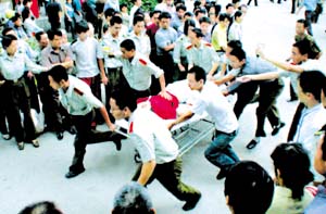 除了事發(fā)當(dāng)?shù)啬暇┙瓕巺^(qū)湯山鎮(zhèn)居民和救護(hù)人員之外,出租車司機(jī)是這座城市最先知道這一事件的人。昨天,在記者乘坐的每一輛出租車上,司機(jī)師傅都在不停地調(diào)選廣播電臺(tái),希望盡快知道更多有關(guān)中毒事件的消息。南京中北出租汽車公司的一位司機(jī)說,如果可能,他愿意無償為救護(hù)工作服務(wù),“都是些孩子和民工兄弟呀”。