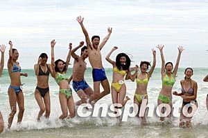 來自全國各地的35名模特選手十七日聚集海南三亞亞龍灣,參加2002新絲路中國模特大賽總決賽開賽前的最后一次選拔---“沖刺亞龍灣”的比賽。毛建軍 攝