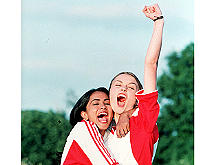 中新網(wǎng)9月19日電 《我愛(ài)貝克漢姆》女主角帕敏德初登大銀幕,為了扮演好這個(gè)對(duì)貝克漢姆有狂熱崇拜的角色,她憑著“JUST DO IT”的精神,苦練足球基本功,令導(dǎo)演不禁懷疑帕敏德私下究竟花了多少時(shí)間偷練?有場(chǎng)讓帕敏德表演踢自由球的戲碼居然一次就O.K,令劇組人員目瞪口呆!