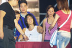 Vanness舉行完簽唱會之后,昨午已飛返臺灣。原本Vanness搭下午一點(diǎn)的飛機(jī)離開,但最后改搭三點(diǎn)班機(jī)。Fans不但逃學(xué)來守候偶像,有十名歌迷更搭的士由酒店追到機(jī)場。約兩點(diǎn)十分,帶帽一身牛仔裝束的吳建豪抵達(dá)機(jī)場,一下車半百名Fans即鋒擁而上,瘋狂尖叫,更紛紛將禮物遞給他,情況一片混亂,其中一名女歌迷追逐期間還甩掉了鞋子!不過她仍然不理光著腳丫子繼續(xù)死追!