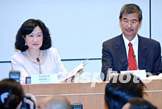 香港保安局局長葉劉淑儀(左)、署理保安局常任秘書長湯顯明,9月24日在政府總部公布有關(guān)《基本法》第二十三條的諮詢文件。洪少葵 攝